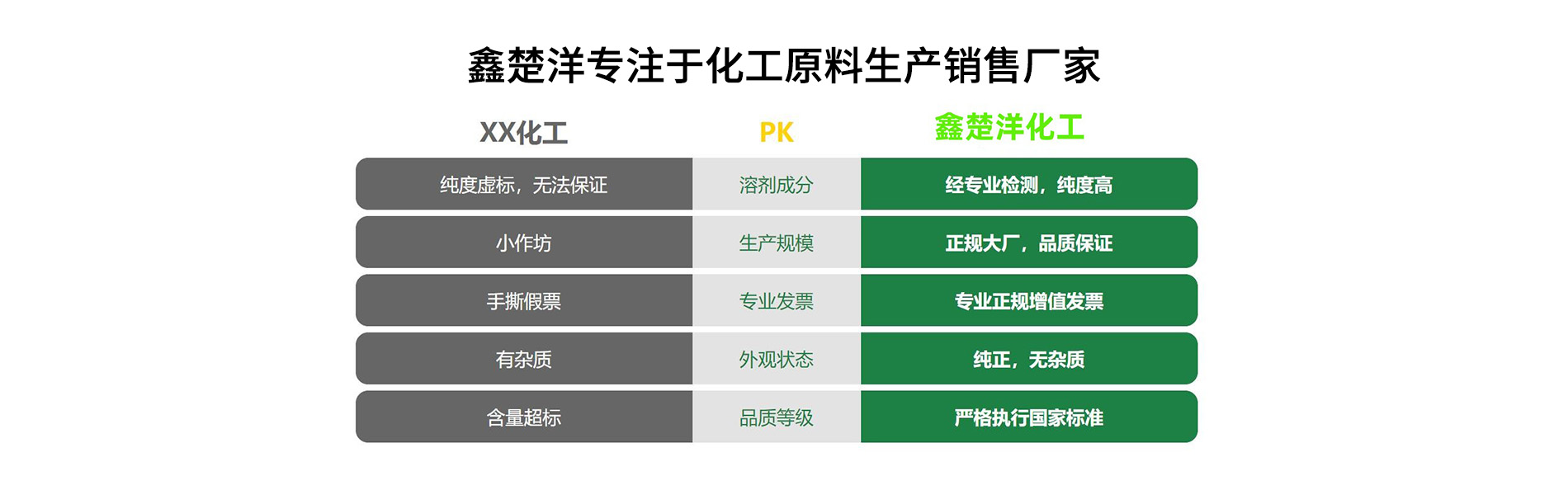 鑫楚洋化工廠家秉承專業、敬業、精業的企業精神,堅持誠信、務實、進取、永續的經營理念,同時依靠先進的技術和設備,嚴把產品質量關,追求客戶滿意度。公司依托自身的研發力量,廣泛開展技術和學術交流,使產品更廣泛地服務于眾多行業。為提供客戶更全面、便捷的服務,鑫楚洋化工積極延伸服務體系,可根據客戶需求,提供定制化的產品、包裝與服務,形成了從原材料控制、生產、檢測、包裝、國內外物流、售前售后服務為一體的全產...
